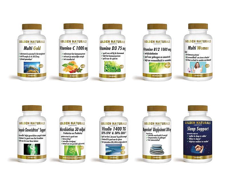 Golden Naturals is gespecialiseerd in hoogwaardige voedingssupplementen en natuurlijke verzorgingsproducten. Het leven is een avontuur vol mooie momenten én uitdagingen. Soms heb je wat extra ondersteuning nodig. Daarom maken wij natuurlijke supplementen die puur, krachtig en zonder onnodige toevoegingen zijn. Met optimaal opneembare ingrediënten voor maximale effectiviteit. Om zowel symptomen én oorzaken snel aanpakken. De producten van Golden Naturals worden in Nederland geproduceerd.