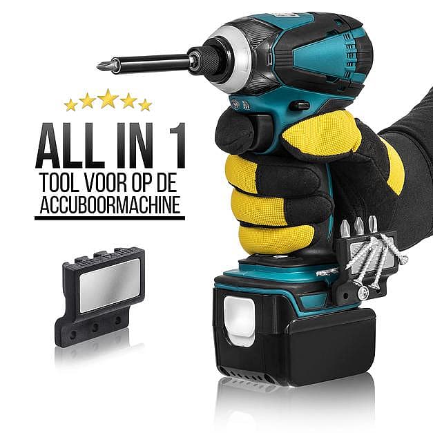 Op mijn boormachine zit aan de voorkant 4 van die handige bithoudertjes... die mis ik bij andere machines. Nu is dat verleden tijd want deze adapter oftewel Bit-Fix kan je bijna aan elke boormachine bevestigen. Plus nog een sterke magneet erbij maakt hem nog multifunctioneler, een handje schroeven er tegen aan en het zit vast. Fijne om mee te werken!
